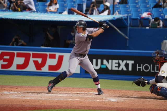 何としても反撃したい7回表、小原、渡辺憩、常松の三連打などで二死満塁の好機を作ると、打席にはリーグ戦初出場の1年生・加藤。捉えた7球目はレフト線への走者一掃の適時二塁打となり、3点を返す。