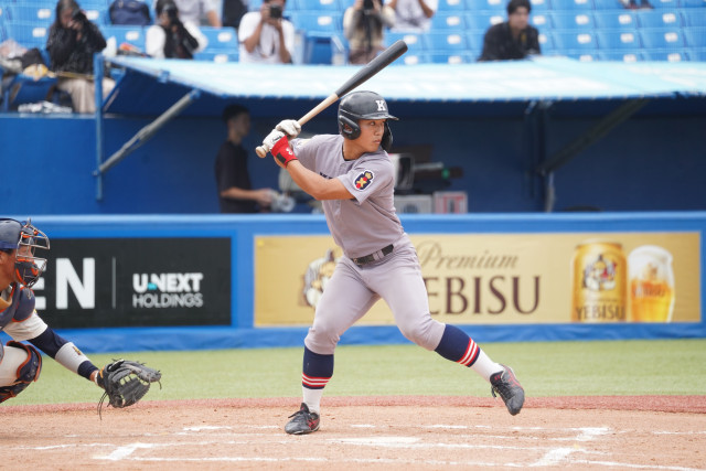 何としても勝ち越したい塾打線は6回表、先頭・林純、吉開の連打などで一死満塁とすると、渡辺憩がレフト線への痛烈な適時二塁打を放ち、2点を追加する。なおも二死三塁から、途中出場の1年生・一宮にリーグ戦初安打が本塁打となる2ラン本塁打が飛び出す。