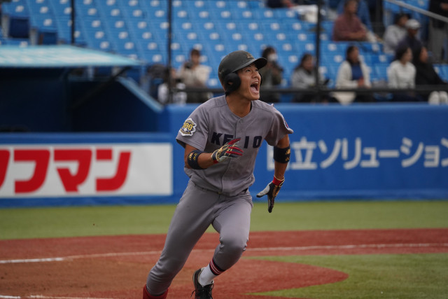 追いつきたい塾打線は4回表、渡辺憩の内野安打などで二死一、二塁と得点圏に走者を置くも、あと一打が出ず無得点に終わる。